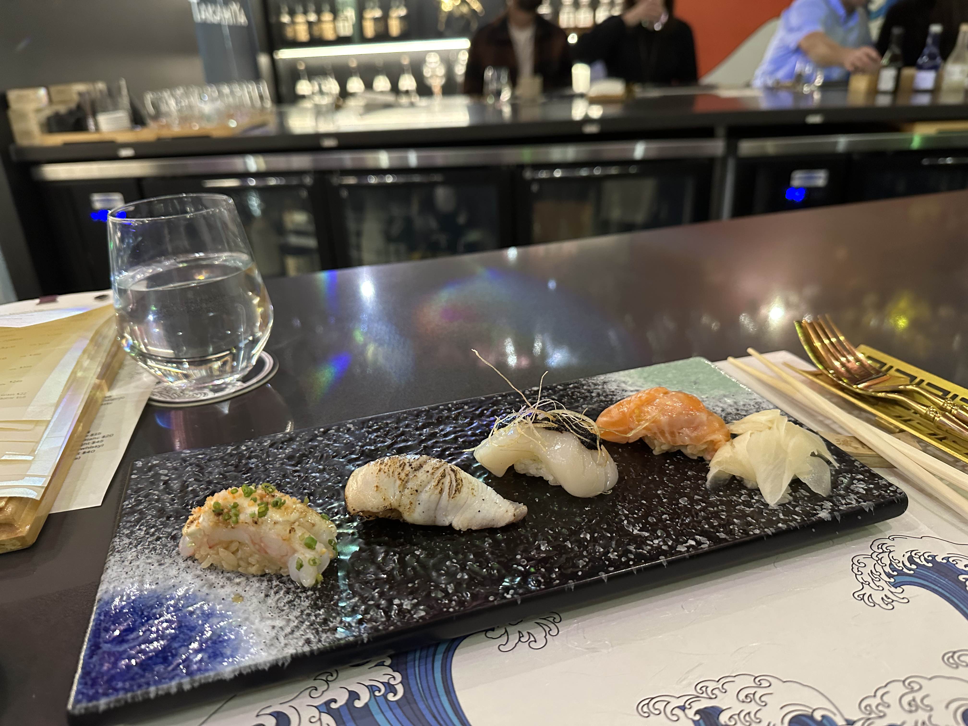 왼쪽부터 먹는 걸 추천한다고 해서 먹어봤는데 왼쪽 초밥이 제일 맛있었다!