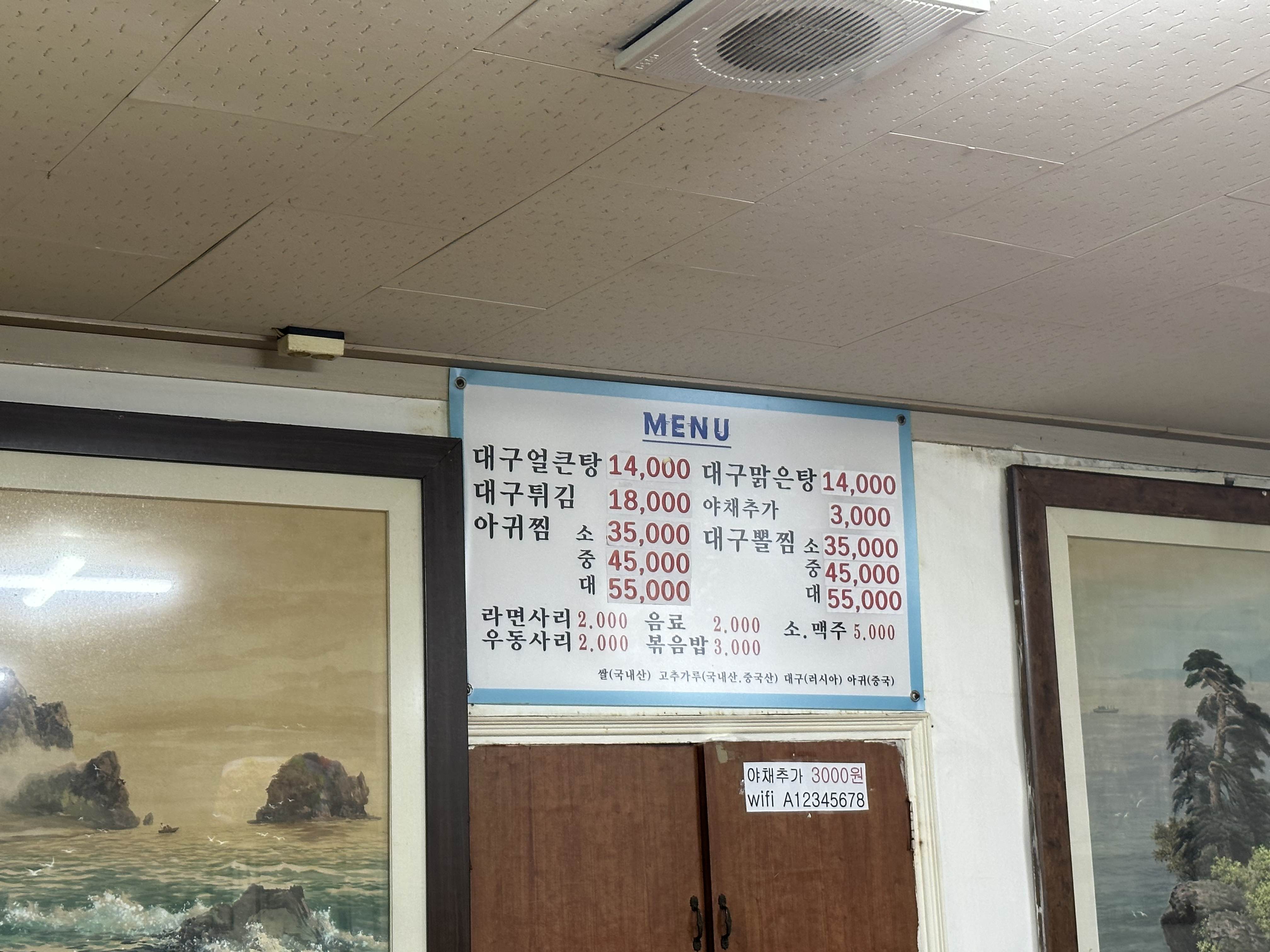 대구탕, 뽈찜, 대구튀김, 아구찜 이렇게 네 개가 메인 메뉴인데 친구는 들어가자마자 무조건 아구찜과 대구튀김을 시켜야한다고 했고 설레는 마음으로 기다렸다.