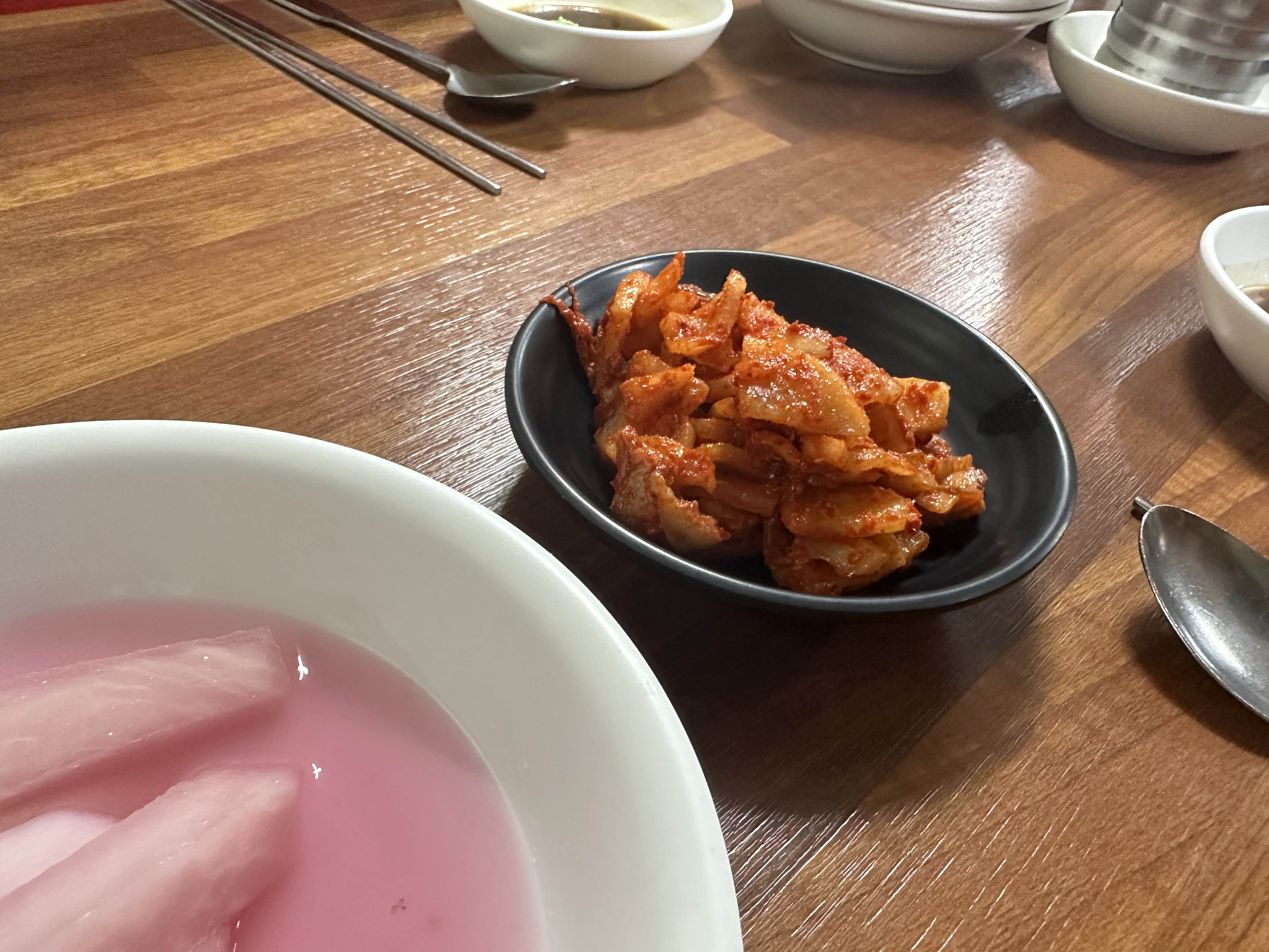 서비스로 나오는 건데 생선도 들어있다! 탕 안에 있는 무가 또 시원하고 맛있었다.