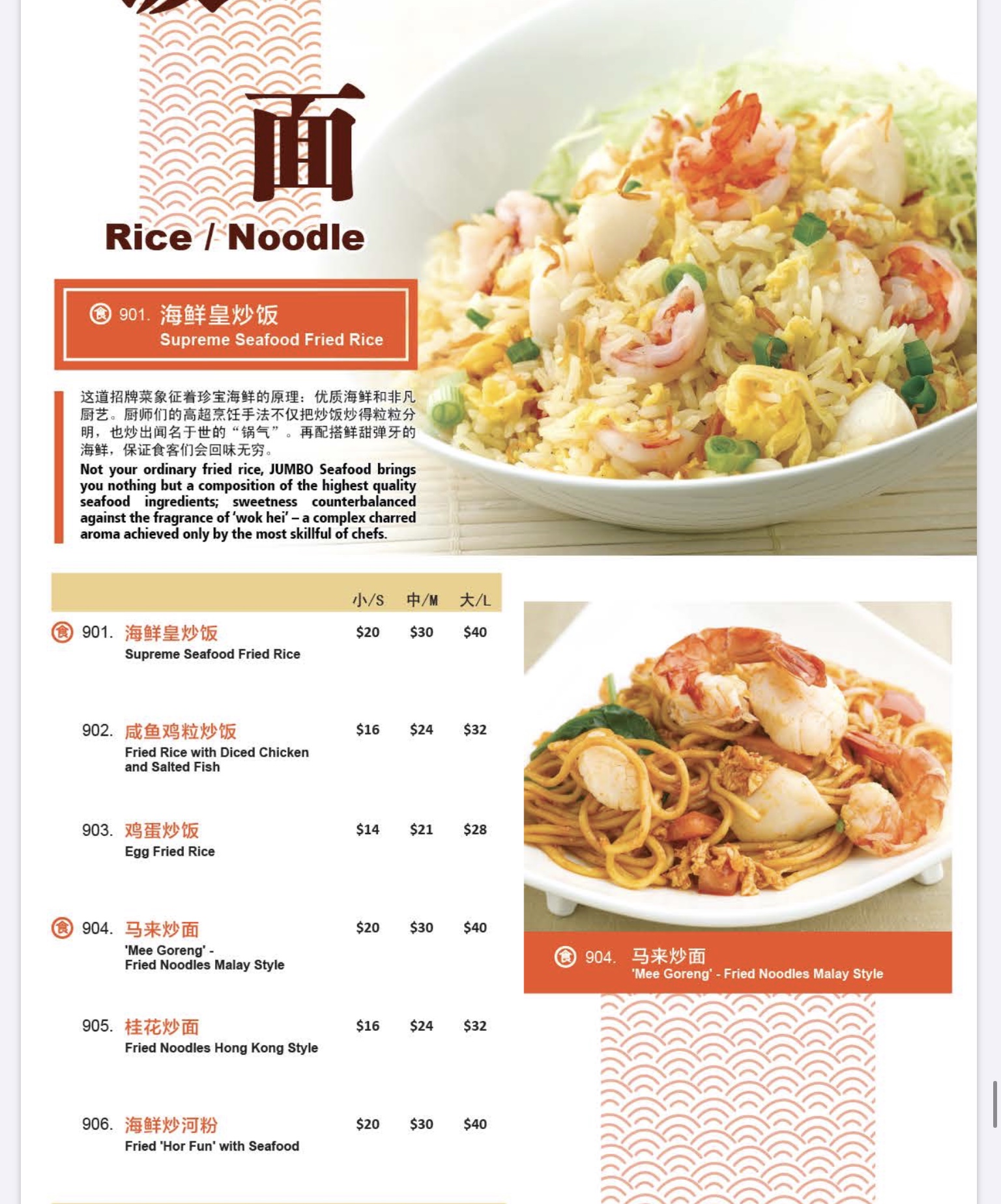 해산물 볶음밥은 제일 처음에 있는 슈프림 씨푸드 라이스 인데 가격은 소중대 각각 20, 30, 40불이다.