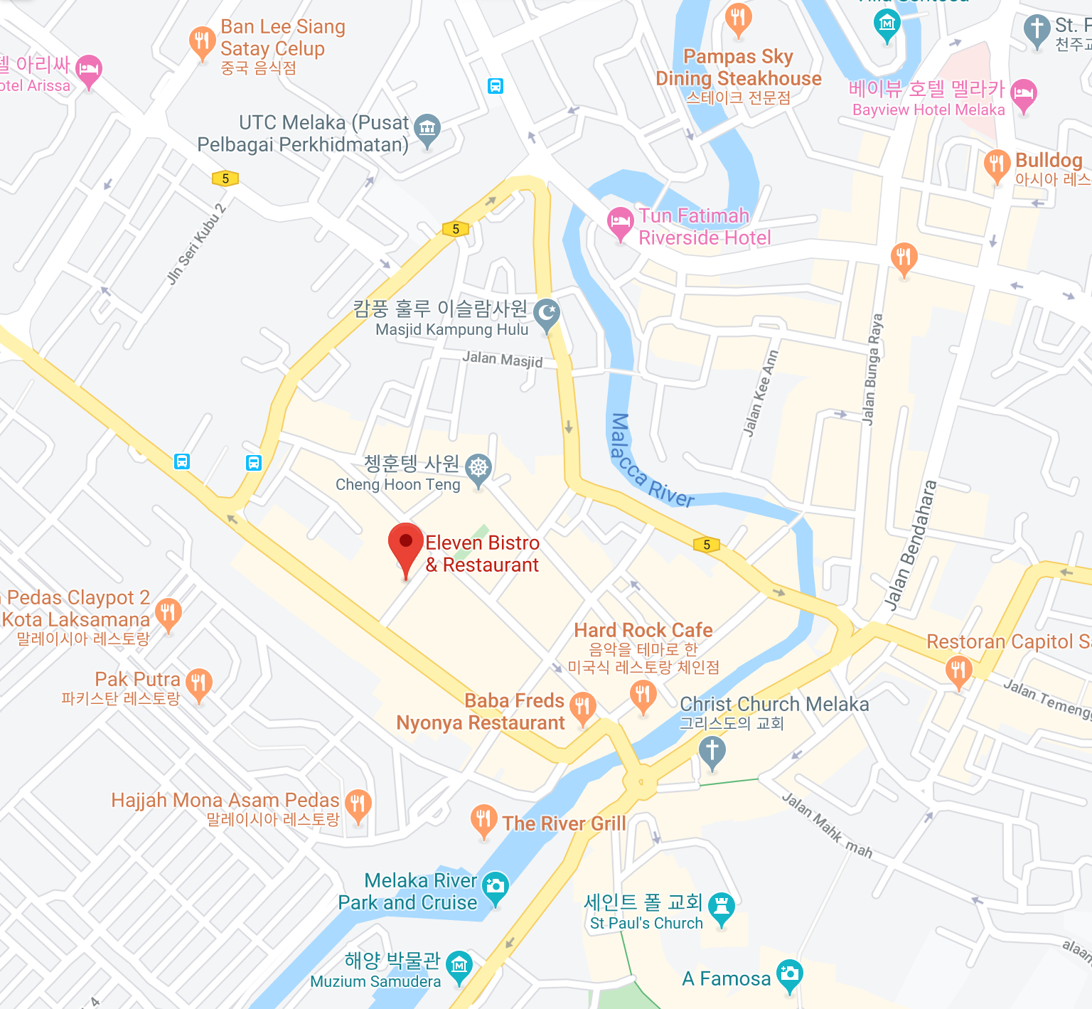 말라카의 아무 길거리 쇼핑센터에 들어가서 마사지 받고 네일 받으면서 얻은 정보로 일레븐 비스트로라는 곳을 가게 되었다. 목표는 칠리 크랩!