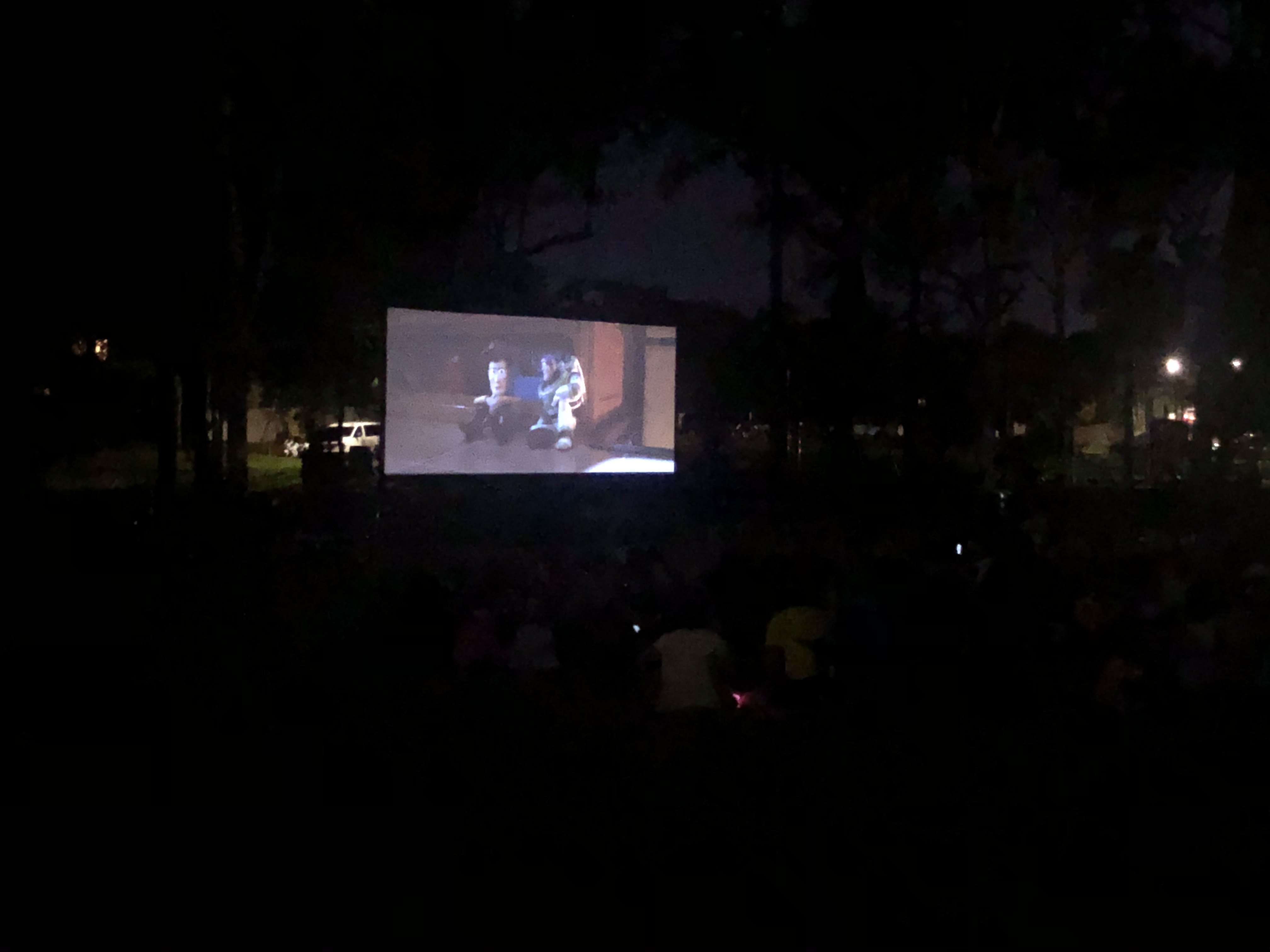집에 오는 길에 공원에 사람들이 엄청 많이 모여있었는데 자세히 보니 공원에서 영화를 상영해주고 있었다.