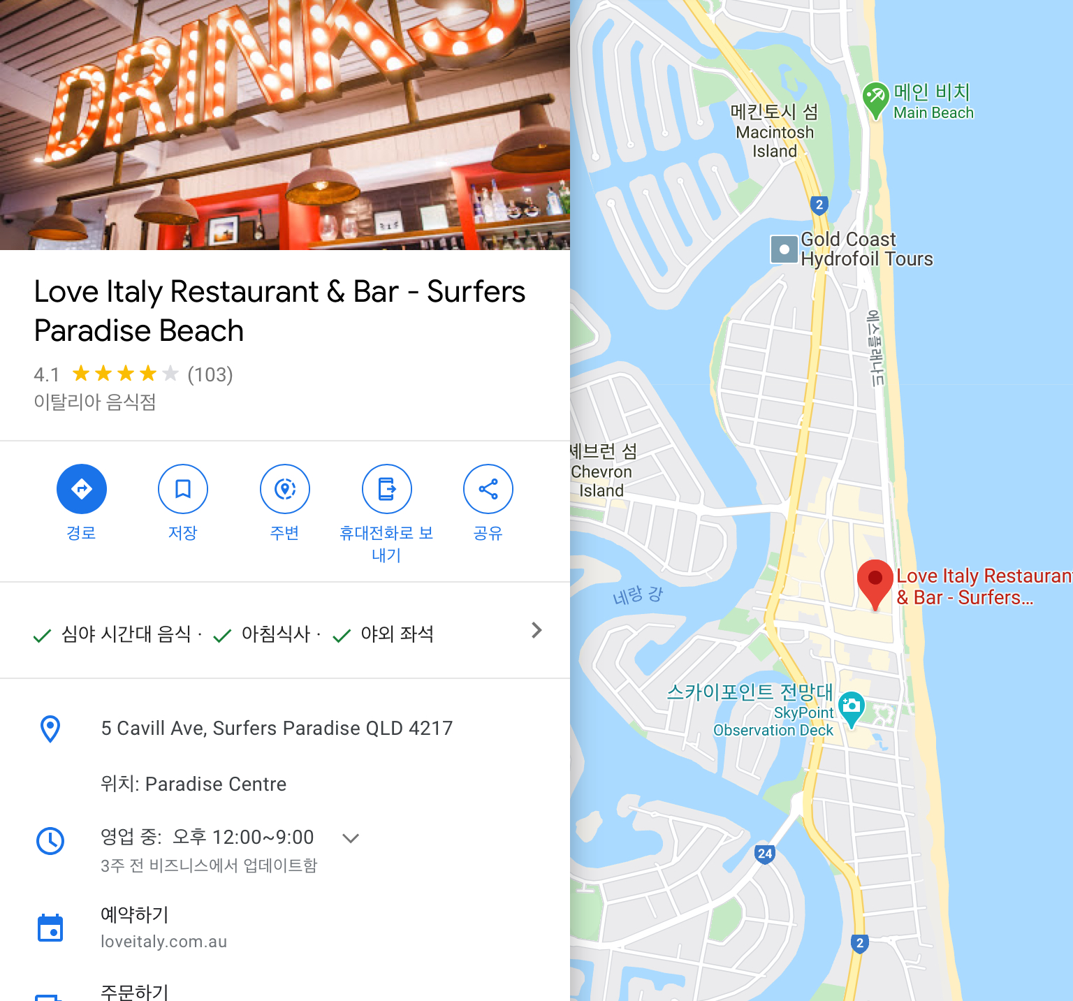 [Gold Coast] Love Italy / 러브 이탈리 - 골드코스트 서퍼스 파라다이스 바로 앞 이탈리안 레스토랑