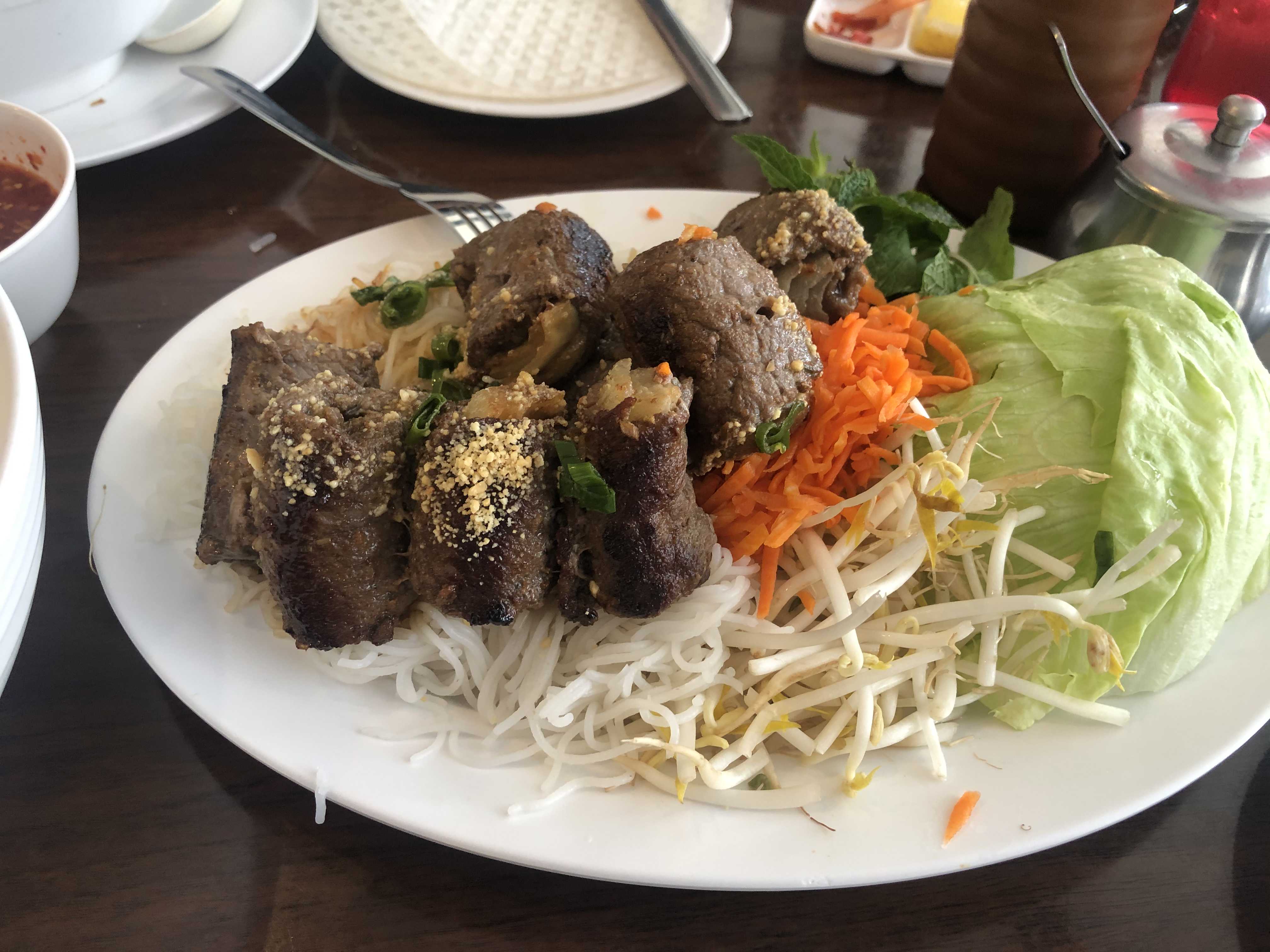 사진에 있는 것은 Skewered Pork with Rice Paper 메뉴이다. 약 14~15불 정도의 가격이였던 것으로 기억한다.