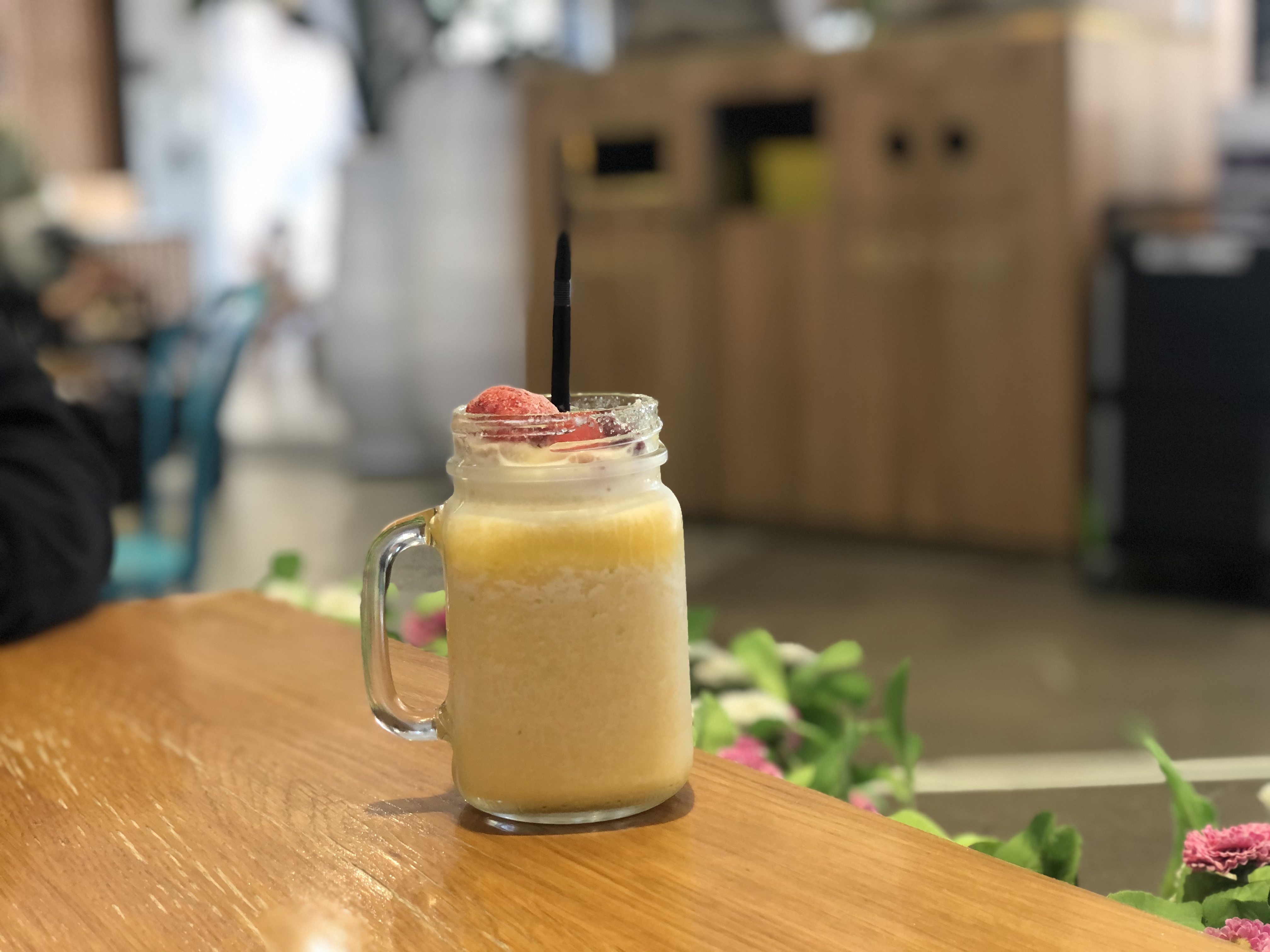 갈증을 달래려고 시킨 스무디 같은 것인데 달달한 망고와 패션푸룻이 들어가있었다.