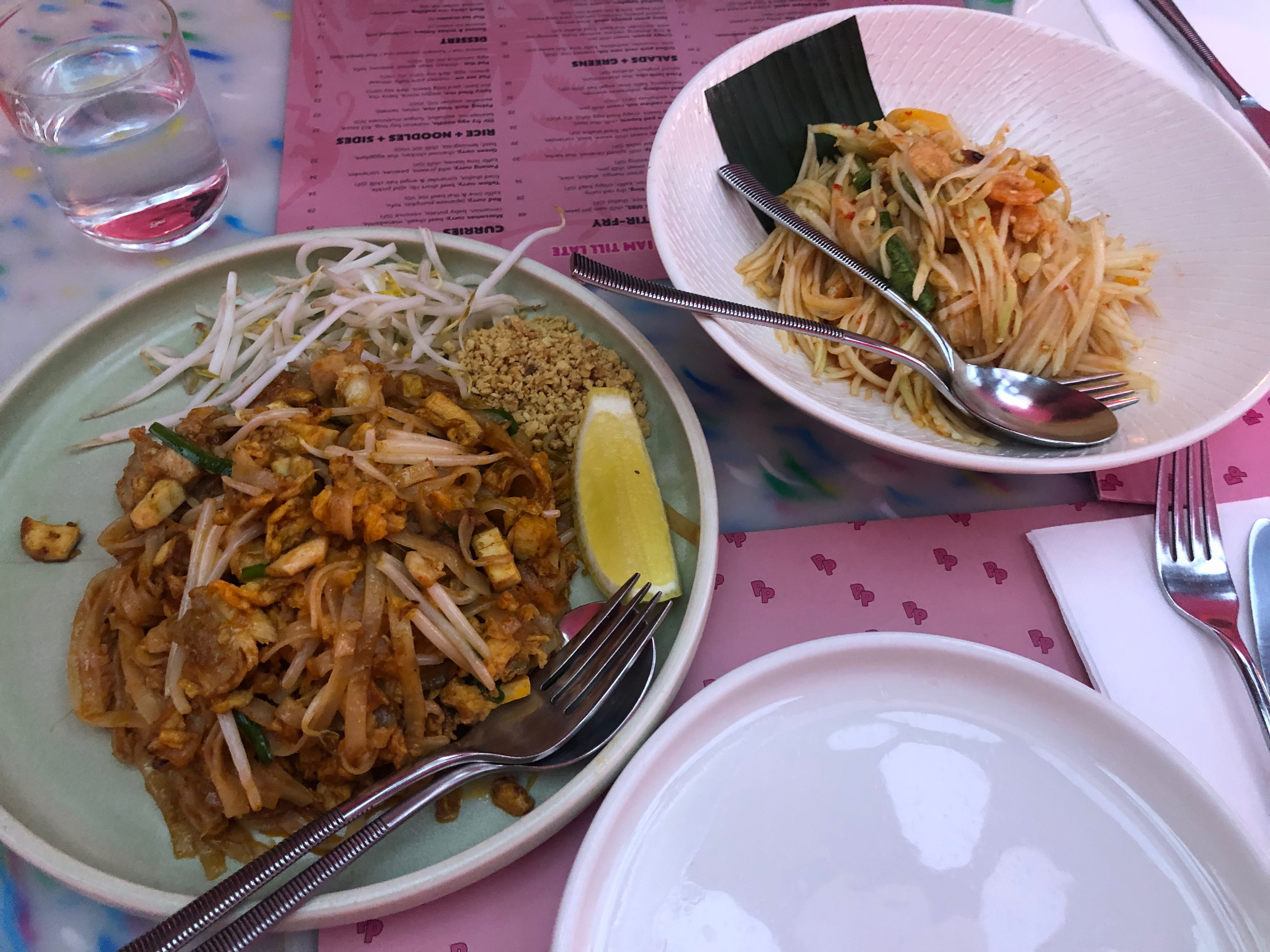 그리고 파파야 샐러드 1개와 팟타이 1개를 시켰다. 가격은 각각 14불, 22불 (아마도) 이다.