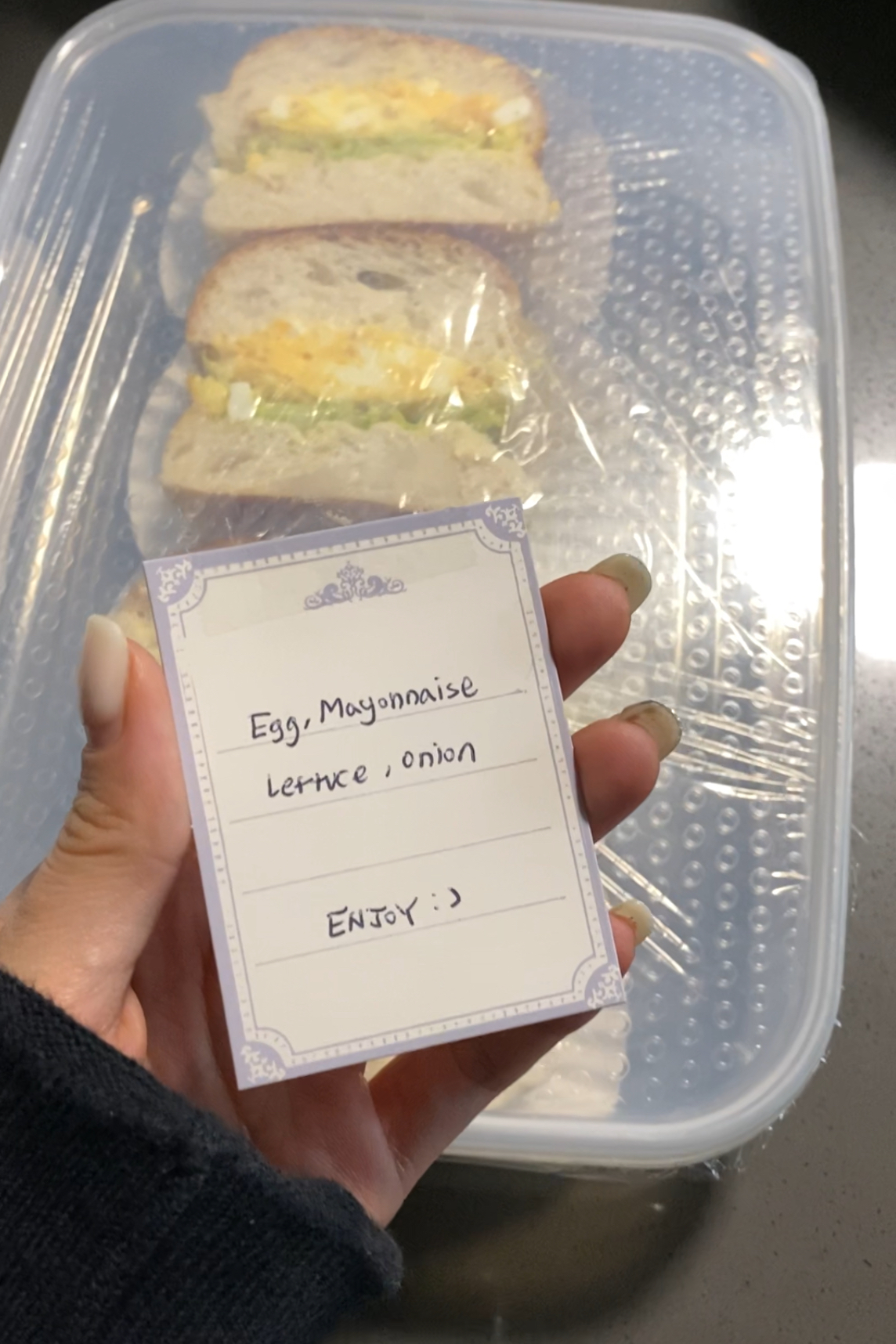 다음날 아침 옆집에게 보답하기 위해서 샌드위치를 준비했다.