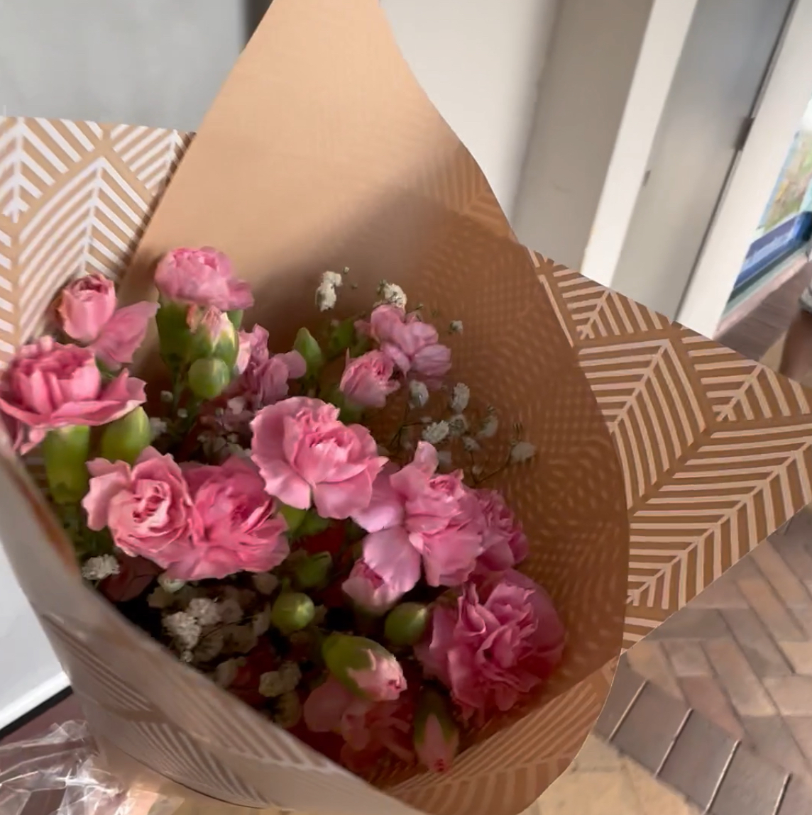 꽃 한 다발도 구매했다. 이상하게 핑크색을 별로 안 좋아하는데 이 날 따라 핑크색 작은 꽃이 너무 예뻤다.